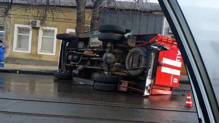 В Одессе в ДТП угодил пожарный автомобиль. В результате столкновения пожарных с двумя легковыми автомобилями машина спасателей перевернулась и заблокировала проезжую часть.