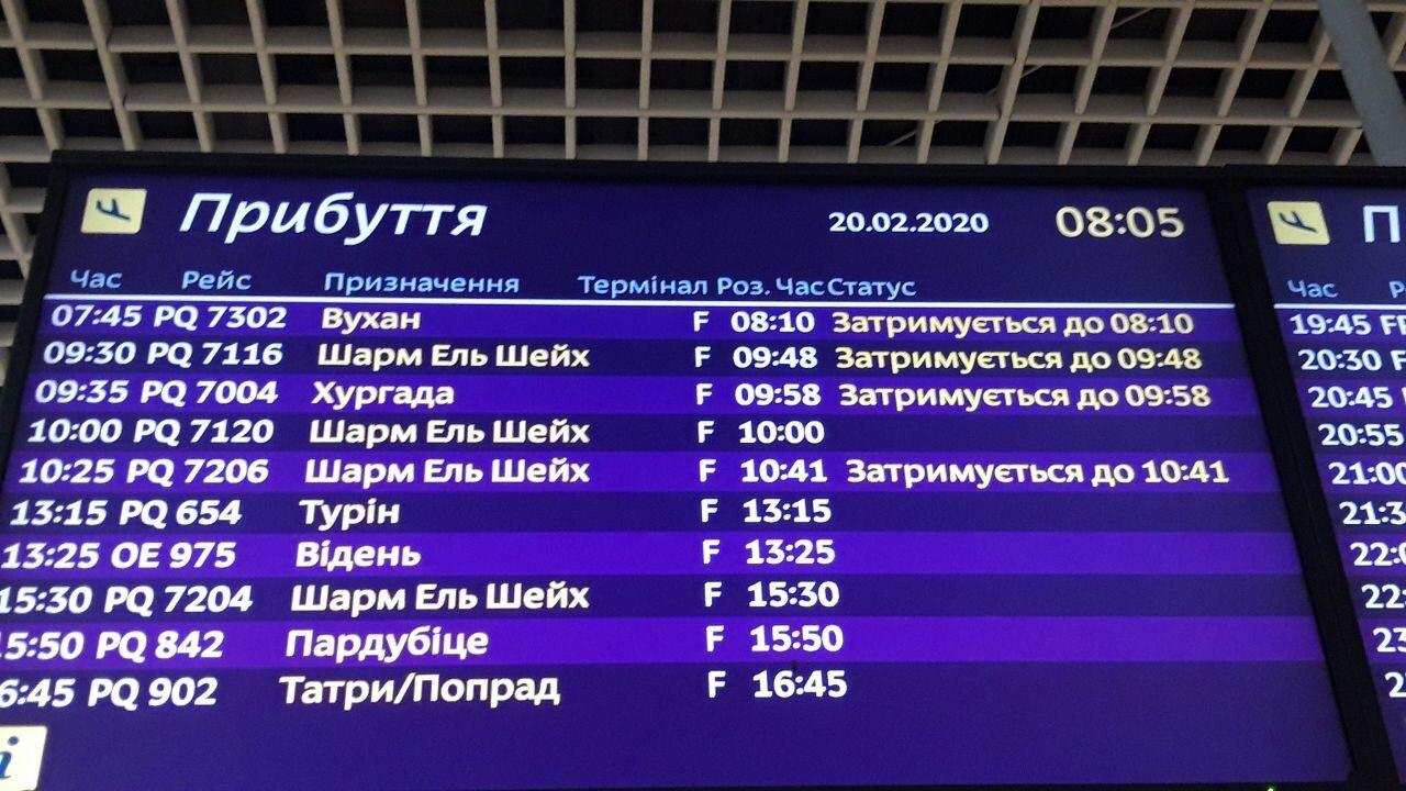 Пока доподлинно неизвестно, куда именно летит самолёт с украинцами, но основные предположения — Харьков и Киев. В аэропорту Борисполь (под Киевом) на табло уже значится рейс из Уханя, он опаздывает.