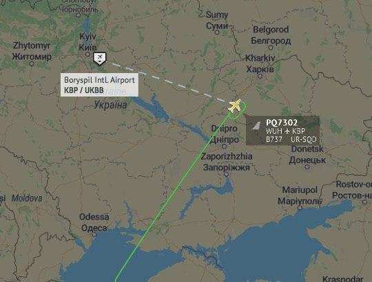 Сейчас, если верить данным портала FlightRadar, с самолётом из Уханя происходит нечто странное: онлайн-радар указывает, что он сейчас делает круги на границе Харьковской и Днепропетровской областей.