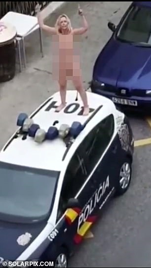 Голая испанка устроила протест на полицейской машине (ФОТО, ВИДЕО)