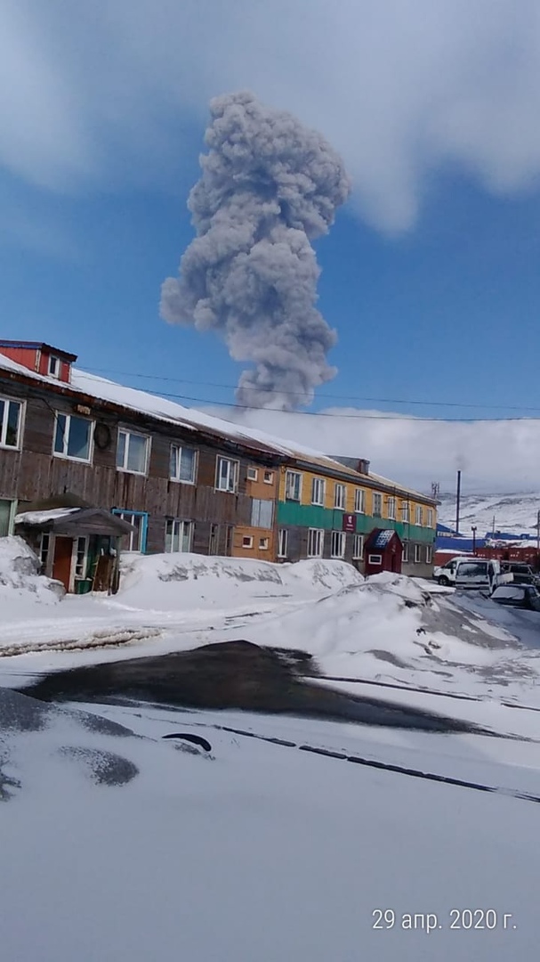 Утром в четверг Эбеко выбросил пепловый столб на высоту до 3,6 км над уровнем моря, но в тот раз в Северо-Курильске пеплопада не было.