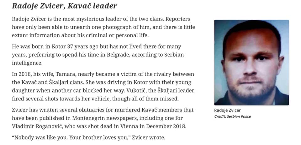 Основная версия вчерашнего покушения — месть за ранее совершенные заказные убийства, которые Радуй Звице организовывал в 2018–19 годах в Черногории и Сербии.