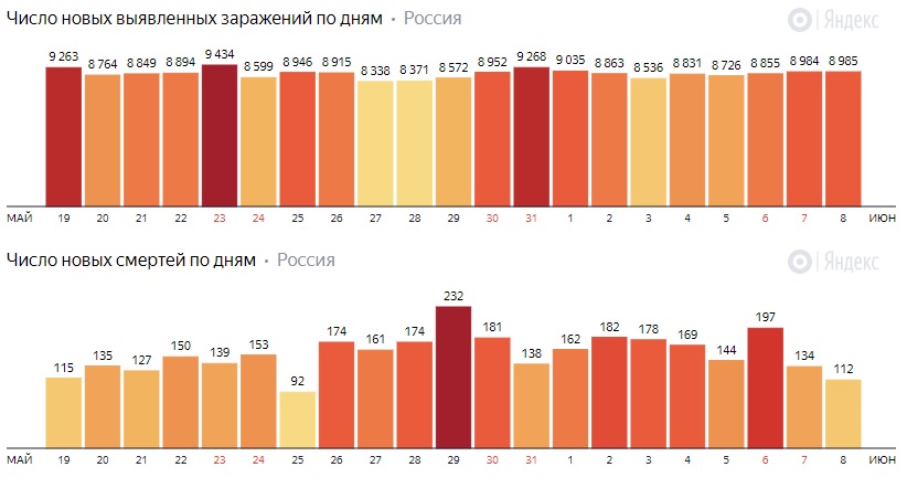 За сутки зафиксировано 112 летальных исходов — это наименьший показатель за две недели, с 25 мая.