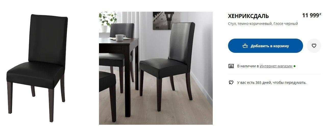 На украинском сайте известного шведского мебельного гиганта раскладные стулья Terje стоят 399 грн, стулья Henriksdal — от 1699 грн (в зависимости от обивки). Доступны стулья из незаконно вырубленного украинского бука и покупателям в России.