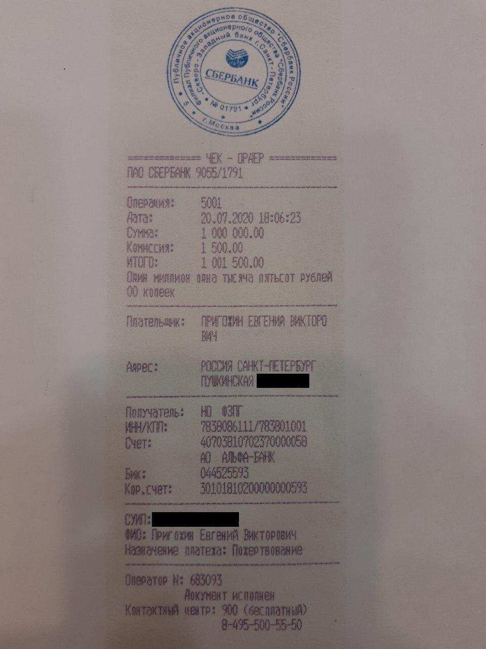 После данного заявления пресс-служба «Конкорда» сообщила, что Пригожин распорядился пожертвовать миллион рублей Навальному. Позже были опубликованы документы о переводе средств.