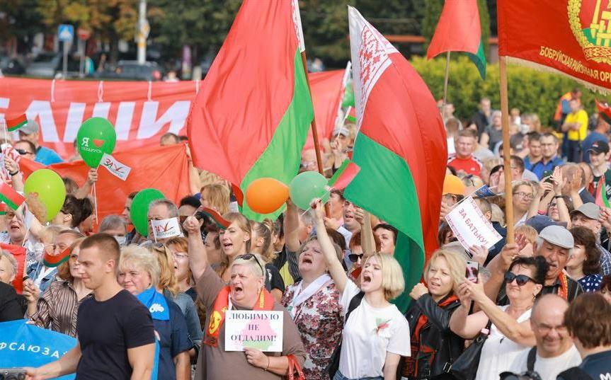 Атмосфера на митинге за Лукашенко в Бобруйске.
