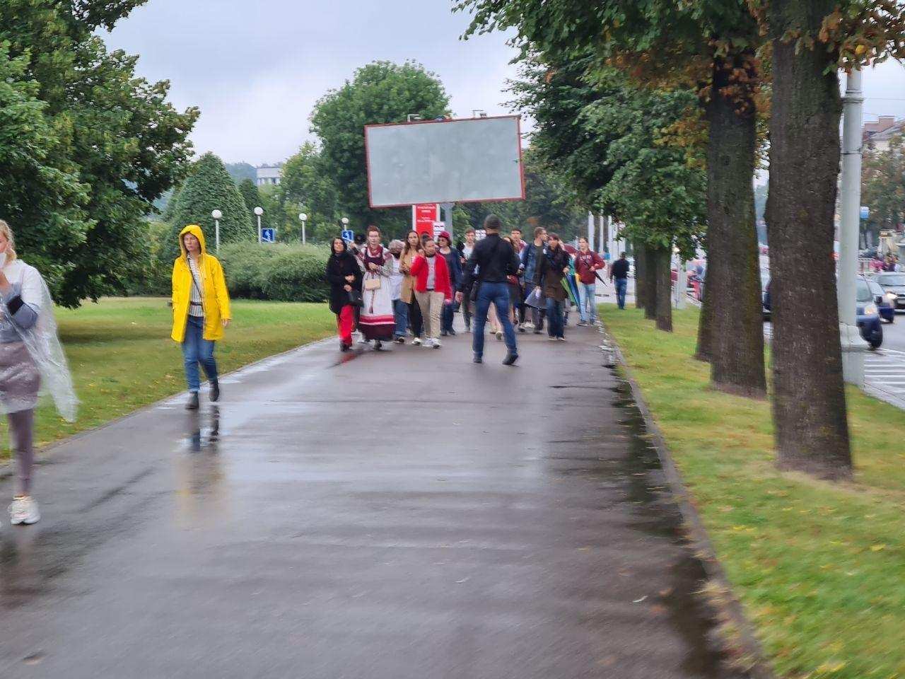 На МЗКТ, где Лукашенко кричали: «Уходи!», небольшая группа агитаторов с лозунгами раздаёт листовки.