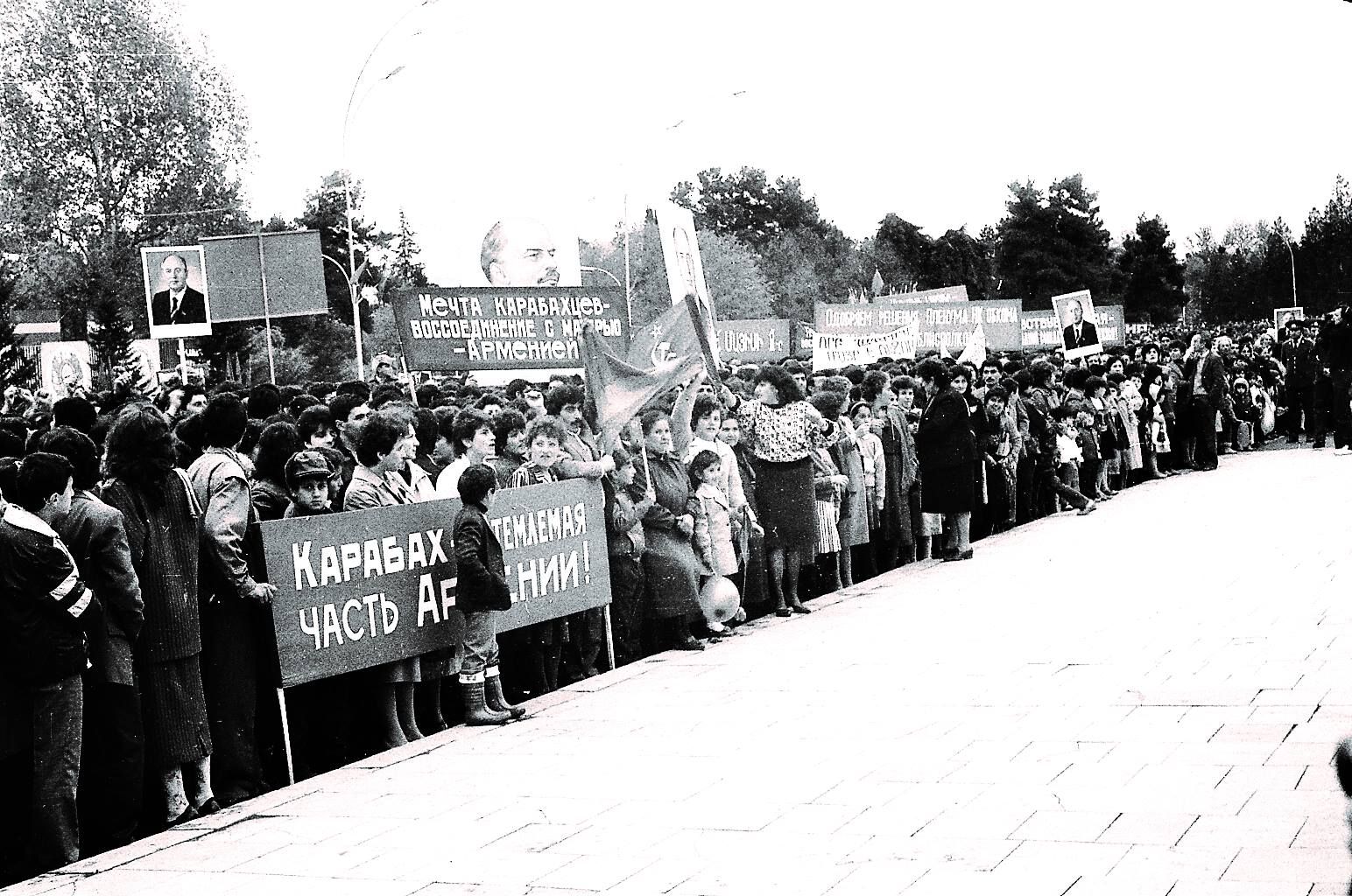 Демонстрация перед зданием областного комитета КПСС в Степанакерте. Фото: ЖАМ / Руслан Саркисян
