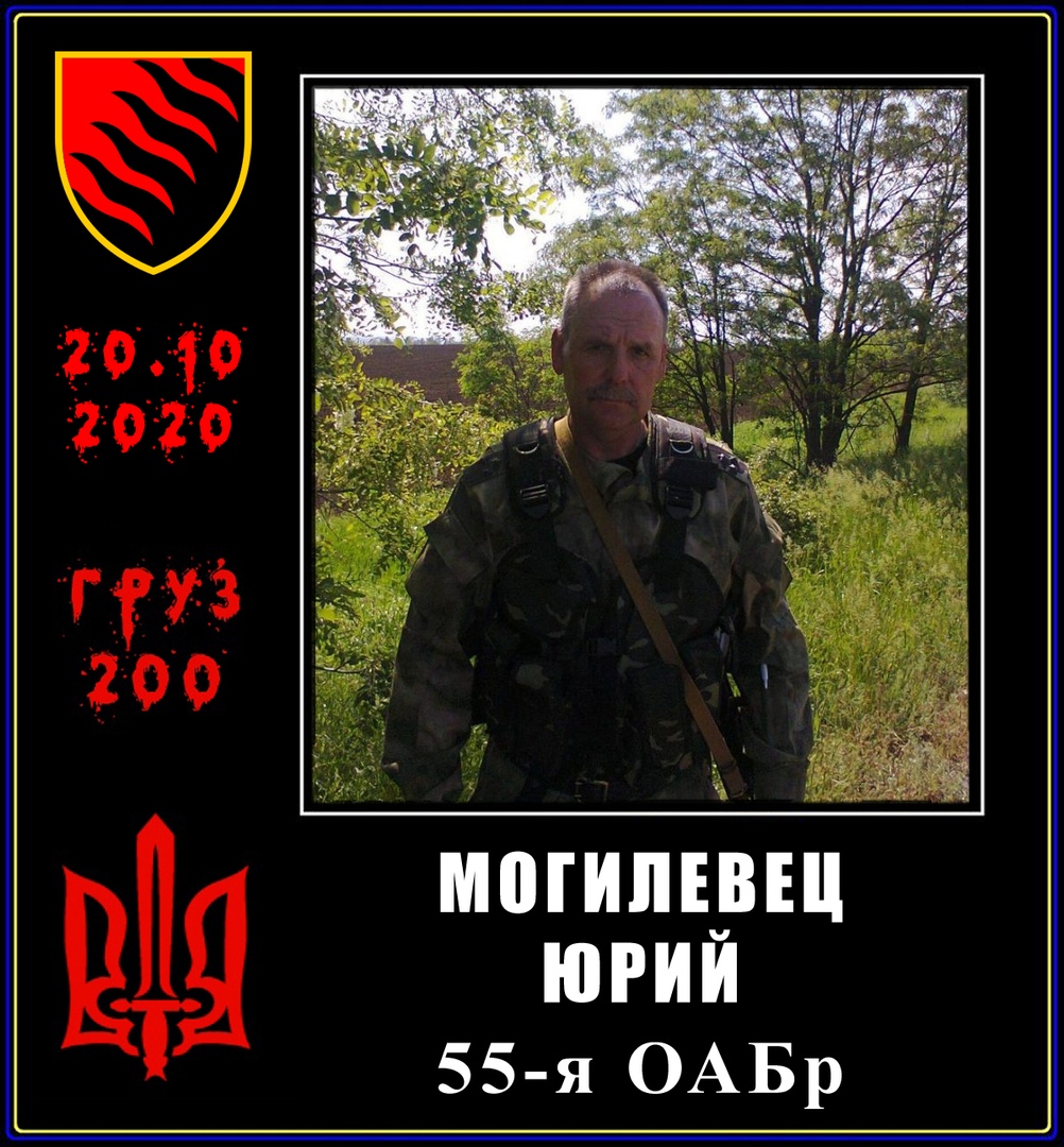 20.10.2020 — Могилевец Юрий Евгеньевич, 1956 г. р., полковник, кадровый военный, бывший заместитель командира 55 ОАБр. С 2014 года добровольно отправился в зону «ООС», где за деньги истреблял мирное население Донбасса в должности начальника штаба и командира 23 ОМПБ «Хортица».