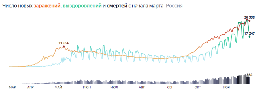 За последние сутки в России выявлено 26 338 новых случаев заражения коронавирусом, общее число заболевших с начала эпидемии в нашей стране достигло 2 295 654.
