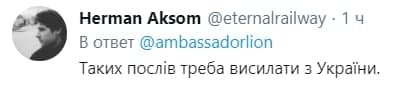 «Таких послов нужно высылать из Украины», — потребовал один из комментаторов.