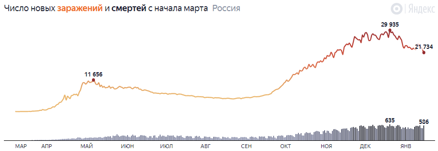 Всего на сегодняшний день в России выявлено 3 612 800 случаев коронавируса в 85 регионах. За весь период зафиксировано 66 623 летальных исхода, выздоровело 3 002 026 человек.