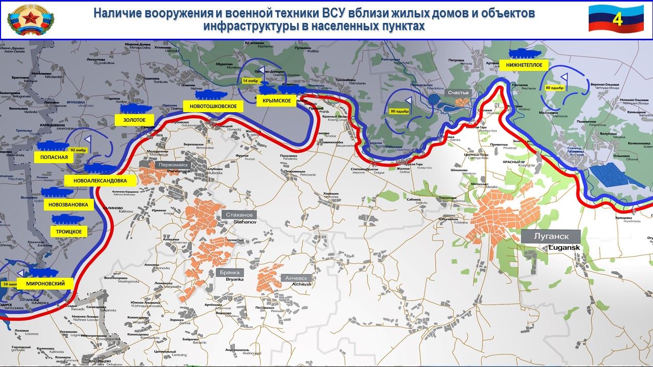Также боевики 92 омбр установили семь противотанковых мин ТМ-62 на дороге в районе н. п. Золотое-4, еще пятьдесят мин были установлены в непосредственной близости от н. п. Золотое-4. Такие действия командования ВСУ ставят под угрозу жизни мирных жителей и наблюдателей СММ ОБСЕ.