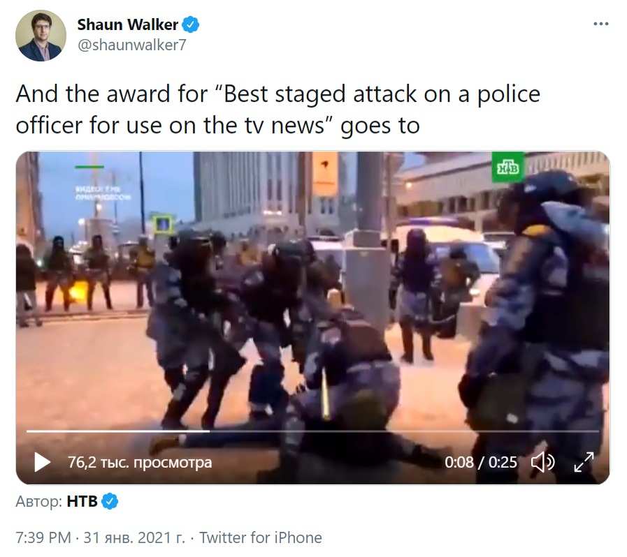 Журналист британского издания The Guardian Шон Уокер, который специализируется на Центральной и Восточной Европе, усомнился в реальности нашумевшего видео с воскресных протестов за Навального.