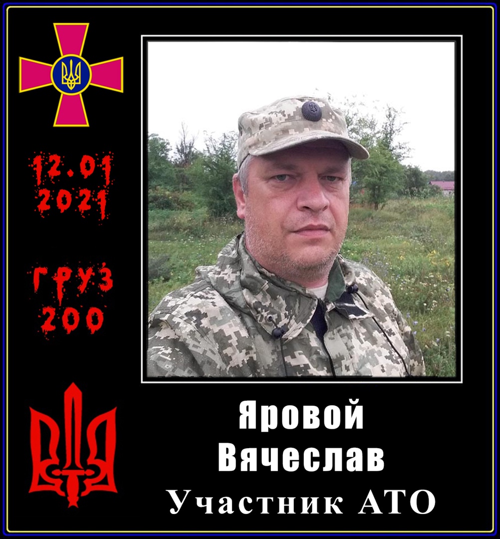 12.01.2021 — Яровой Вячеслав, 1961 г. р., участник «АТО». В 2016 году добровольно отправился в зону «АТО»/«ООС», где за деньги истреблял мирное население Донбасса. Свою расплату за жизни невинно убиенных мирных жителей Донбасса получил в результате внезапной смерти. На родине «героя и защитника незалежной» в г. Вольногорск Днепропетровской области остались жена, дети.