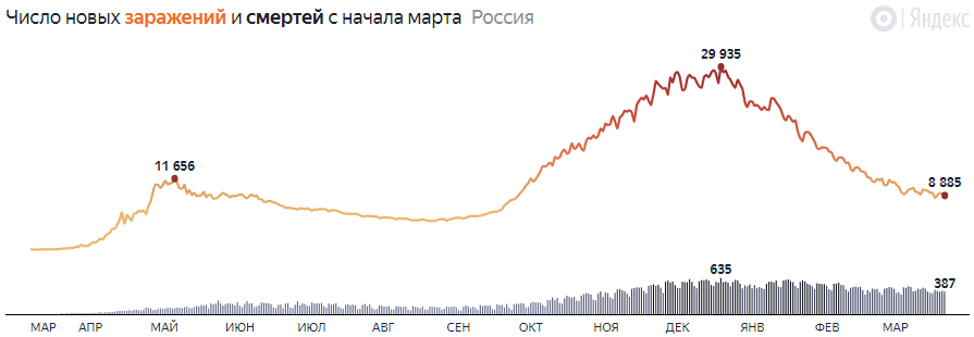 За последние сутки в России выявлено 8 885 новых случаев заражения коронавирусом. Общее число заболевших за всё время с начала эпидемии в нашей стране достигло 4 510 744.