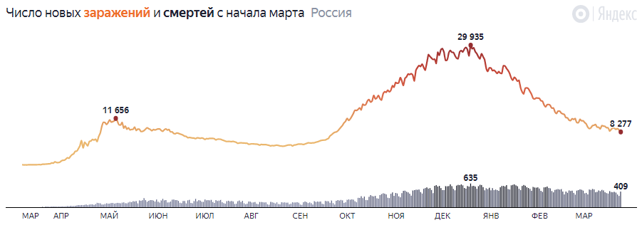 За последние сутки в России выявлено 8 277 новых случаев заражения коронавирусом — это минимальный суточный прирост заболевших в нашей стране с 30 сентября прошлого года.