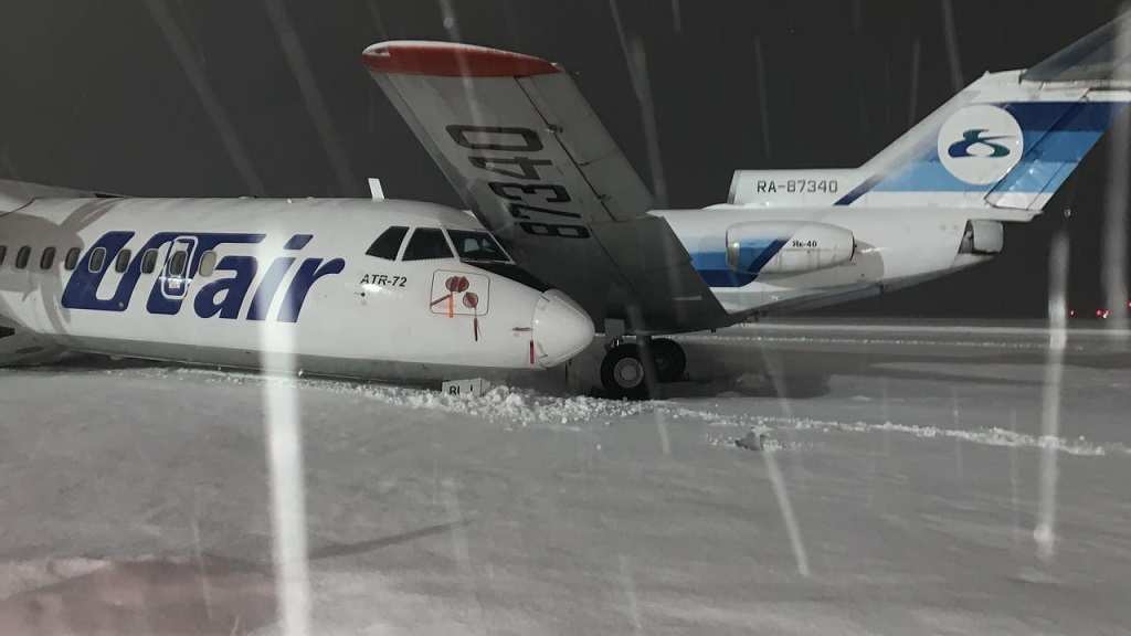 «В 22:45 минут в аэропорту г. Сургута при техническом обслуживании самолётов у воздушного судна ATR-72, находившегося с запущенными двигателями, произошло самопроизвольное движение. В результате совершен наезд на воздушное судно ЯК-40, находившееся на стоянке.