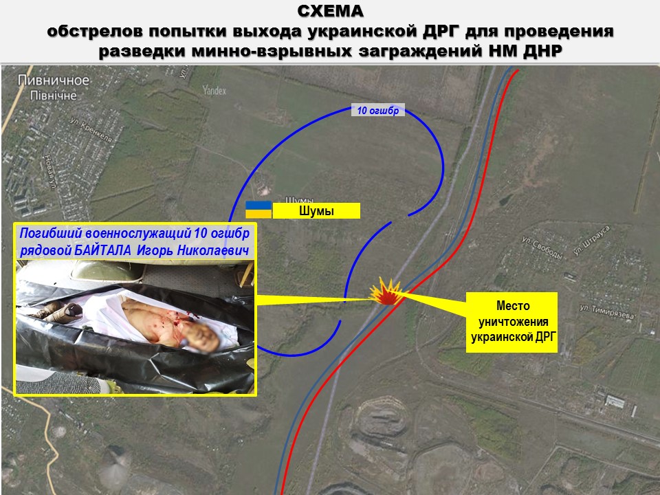 Так, 4 апреля с наступлением темноты, под прикрытием дождливой погоды и тумана, украинские оккупанты совершили попытку проведения разведки минно-взрывных заграждений перед нашими позициями в районе н. п. Шумы.