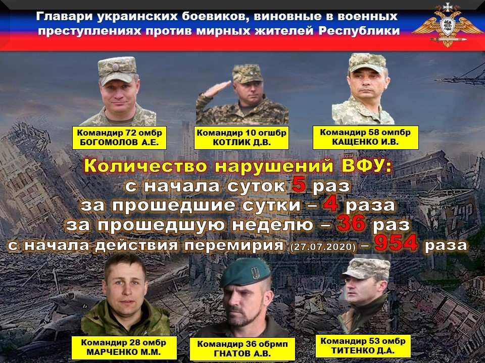 Каратели 28-й бригады ВСУ по приказу Марченко обстреляли н. п. Старомихайловка, выпустив пять артиллерийских снарядов калибром 122-мм и пять мин калибром 120-мм, а также вели огонь по н. п. Александровка, выпустив две гранаты из РПГ и совершив тридцать выстрелов из БМП-2.
