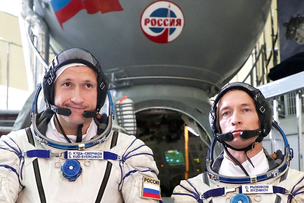 Космонавты Сергей Рыжиков, Сергей Кудь-Сверчков и астронавт NASA Кэтлин Рубинc работали на борту Международной космической станции на протяжении полугода.