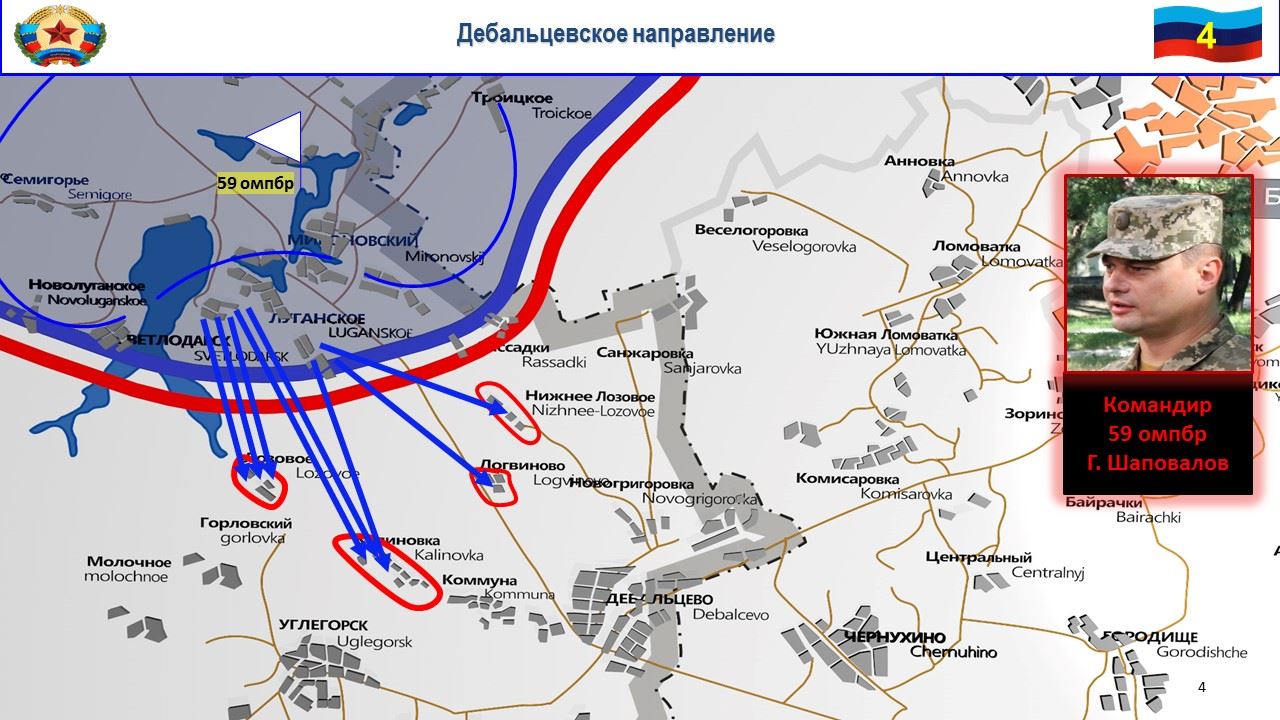 На дебальцевском направлении боевики 59 бригады по приказу Шаповалова с позиций, расположенных в районе н.п. Светлодарск, подвергли обстрелу из минометов калибра 82-мм район поселка Лозовое, также из станковых противотанковых гранатометов был обстрелян район н.п. Нижнее Лозовое.