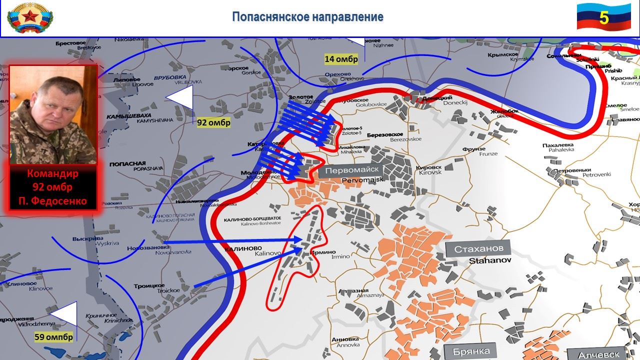 На попаснянском направлении боевики 92 бригады ВСУ по приказу Федосенко с позиций вблизи н.п. Золотое-4 дважды обстреляли из СПГ и подствольного гранатомета район н.п. Золотое-5.