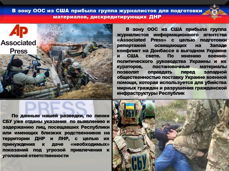 В зону «ООС» из США прибыла группа журналистов информационного агентства Associated Press с целью подготовки репортажей, освещающих на Западе конфликт на Донбассе в выгодном для Украины и США свете.