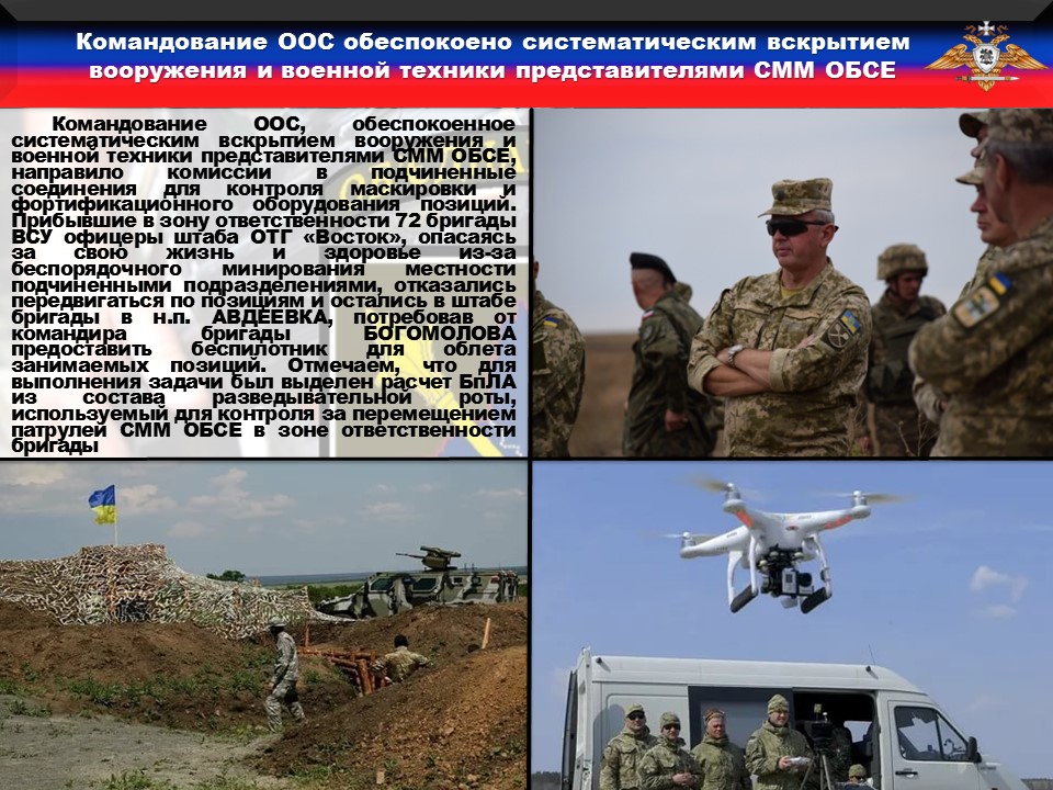 Командование «ООС», обеспокоенное систематическим вскрытием вооружения и военной техники представителями СММ ОБСЕ, направило комиссии в подчиненные соединения для контроля маскировки и фортификационного оборудования позиций.