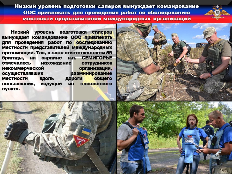 Низкий уровень подготовки саперов вынуждает командование «ООС» привлекать для проведения работ по обследованию местности представителей международных организаций.
