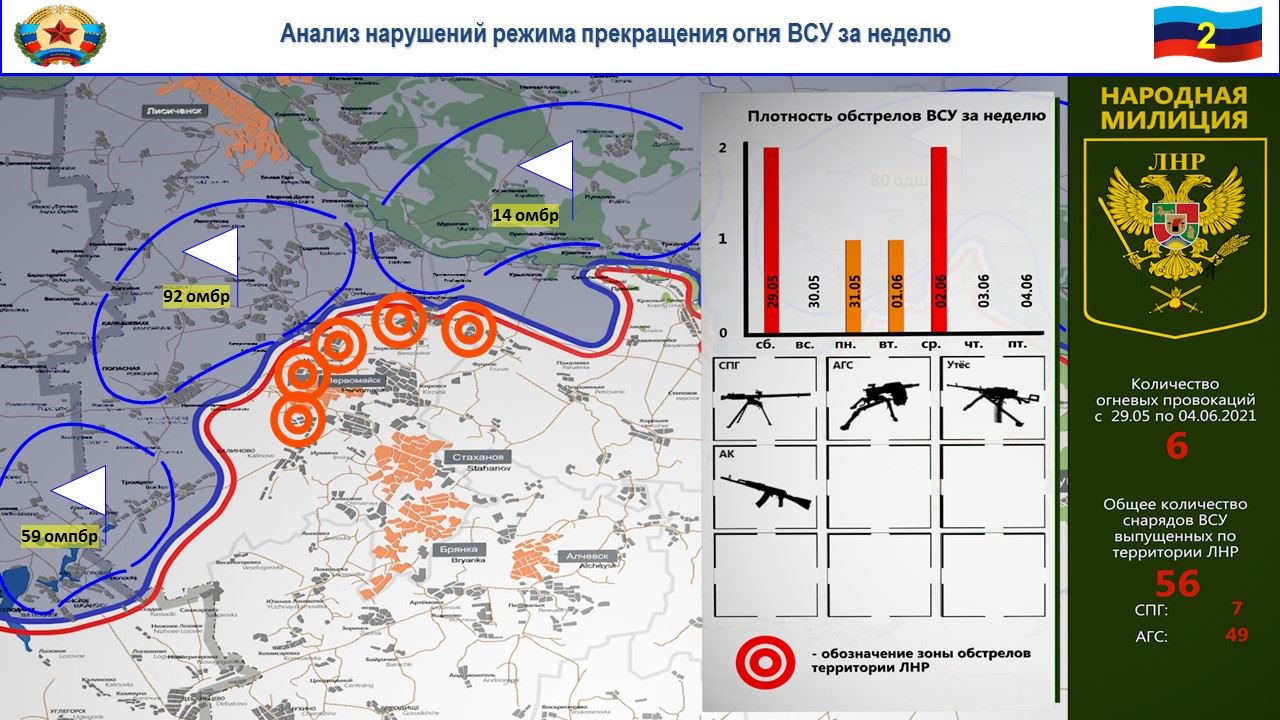 На славяносербском направлении боевики 14 бригады ВСУ по приказу командира Войченко подвергли обстрелам из СПГ, АГС и стрелкового оружия районы н.п. Желобок и Голубовское.