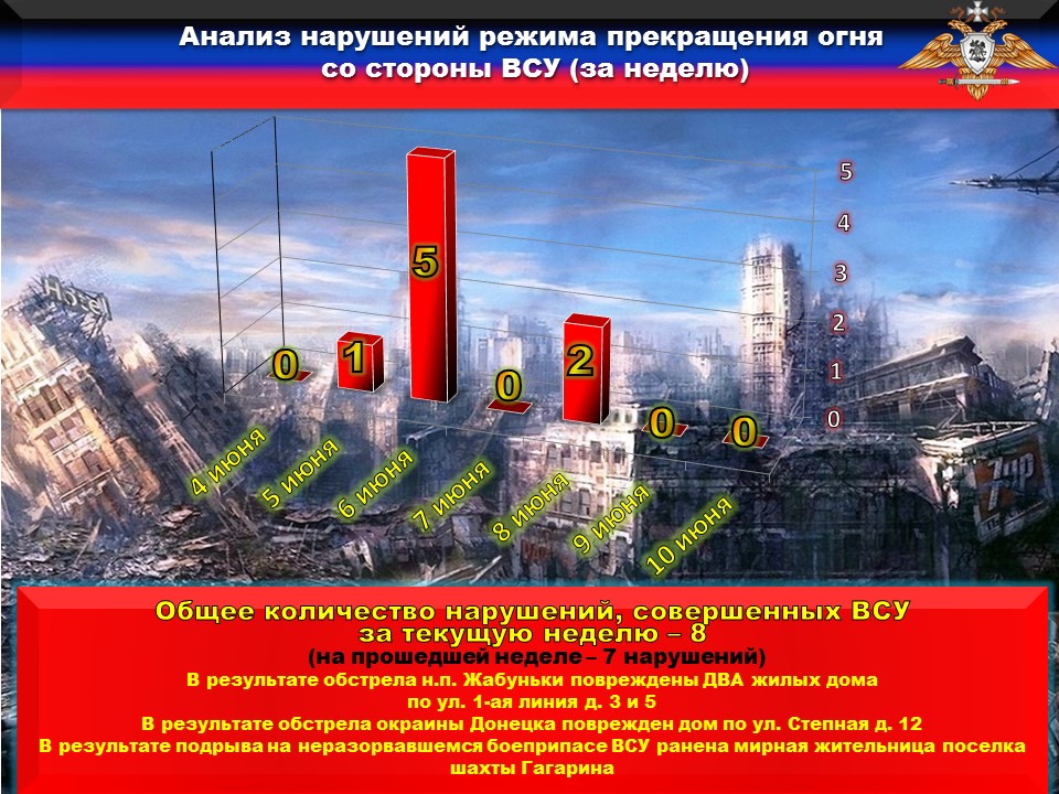 Факты нарушений в оперативном порядке доведены до представителей украинской стороны в СЦКК с целью своевременного принятия мер к нарушителям перемирия и исключения случаев фальсификации учетных данных о нарушениях режима прекращения огня со стороны Украины.