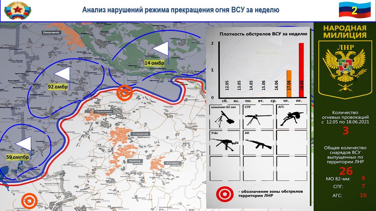 На славяносербском направлении боевики 14 бригады ВСУ по приказу Войченко с позиции н.п. Новотошковское обстреляли из крупнокалиберного пулемета район н.п. Донецкий.