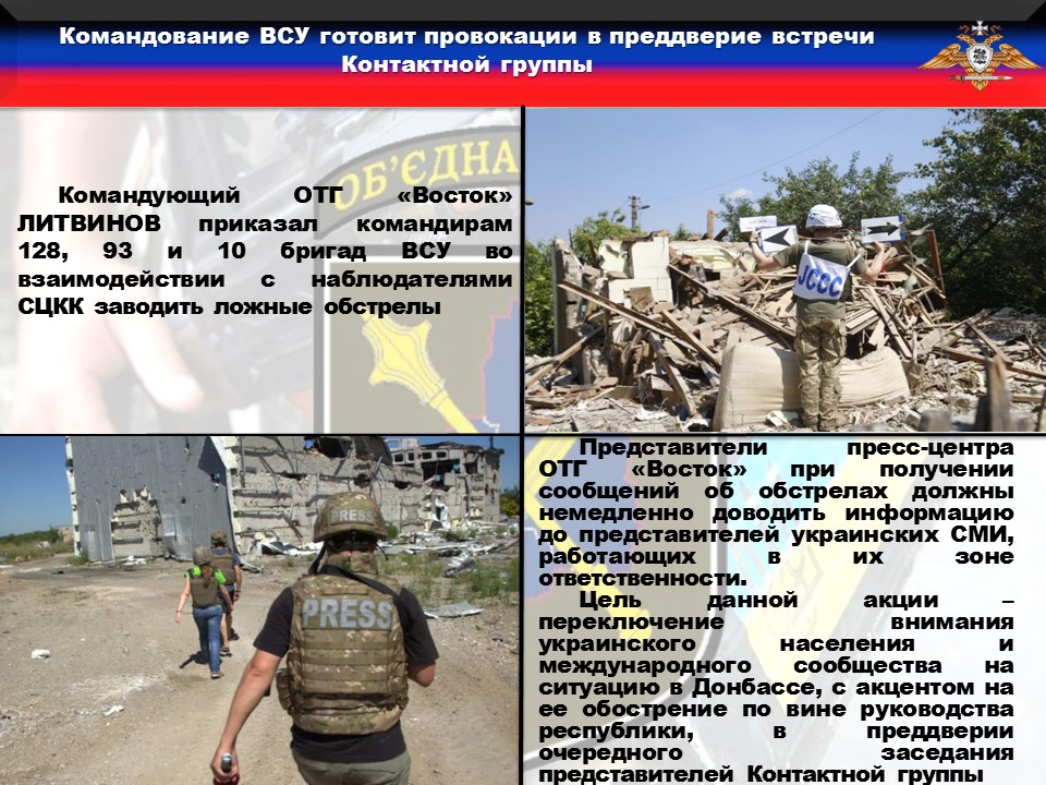 В преддверии начала видеоконференции Контактной группы 7 июля нам поступает информация о готовящейся украинским представительством в СЦКК совместно с командованием ОТГ «Восток» провокации в отношении подразделений НМ ДНР.