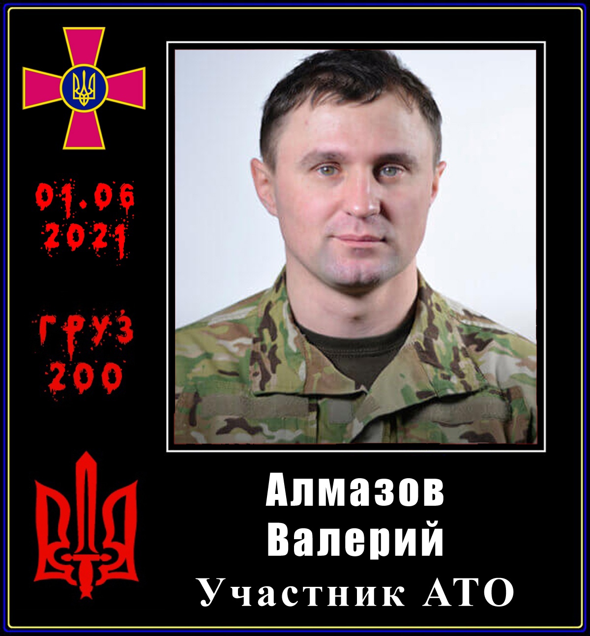 01.06.2021 — Алмазов Валерий Васильевич, 1980 г. р., участник «АТО». С 2017 года добровольно отправился в зону «АТО»/«ООС», где за деньги истреблял мирное население Донбасса.