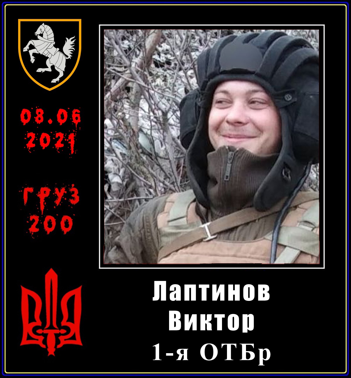 08.06.2021 — Лаптинов Виктор Леонидович, 2001 г. р., старший солдат, старший механик-водитель танка подразделения 1 ОТБр. Свою расплату за жизни невинно убиенных мирных жителей Донбасса получил в виде смерти в реанимационном отделении больницы им. Мечникова (г. Днепропетровск) от тяжелых травм, полученных в результате ДТП.