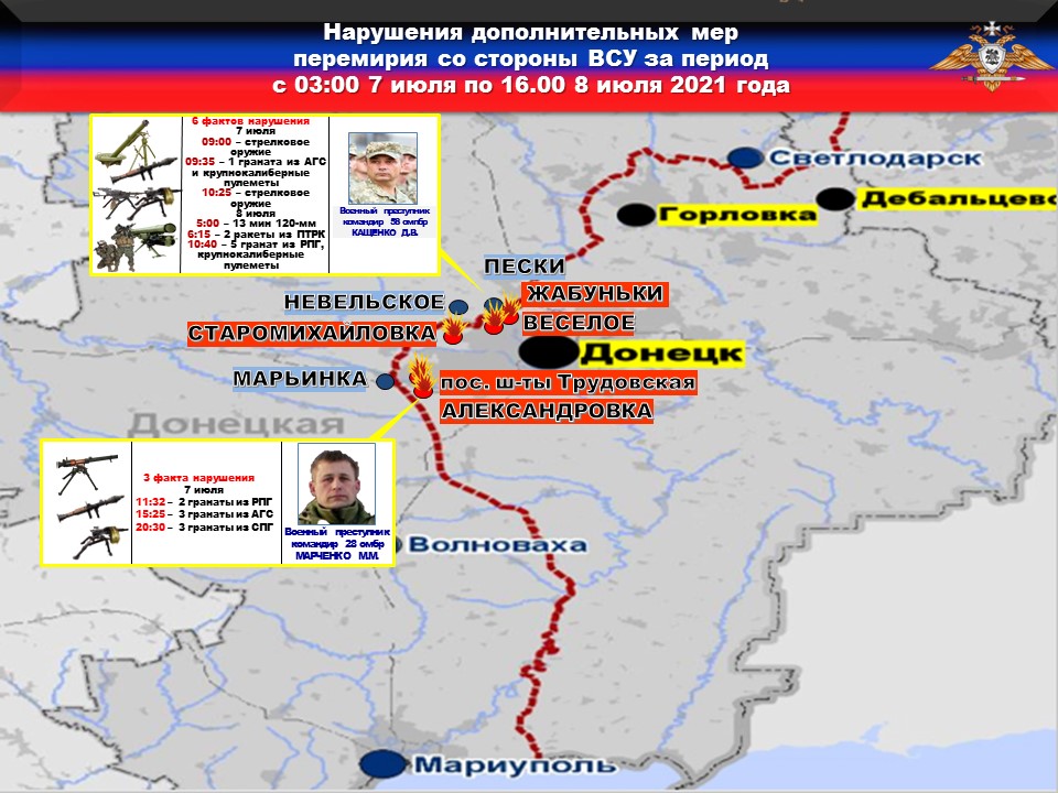 Факты нарушений в оперативном порядке доведены до представителей украинской стороны в СЦКК с целью своевременного принятия мер к нарушителям перемирия.