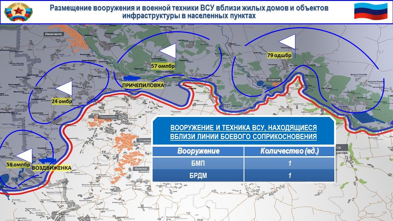 На славяносербском направлении боевики 15-го батальона 128-й бригады ВСУ по приказу комбата Гольшевского с позиций в районе н. п. Причепиловка обстреляли из автоматического станкового гранатомета район н. п. Желобок.