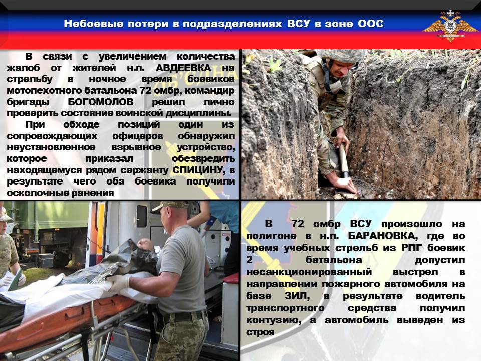 По заключению комиссии причинами роста небоевых потерь в зоне «ООС» является нежелание военнослужащих выполнять задачи на передовой из-за боязни гибели, а также самоустранение младших командиров от выполнения своих обязанностей.
