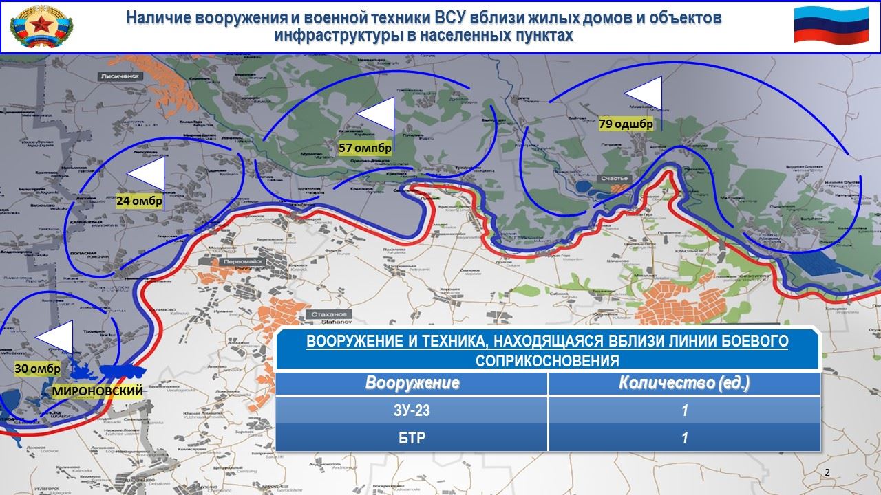 Так, за прошедшие сутки нашей разведкой выявлено нахождение одной зенитной установки ЗУ-23 и одного бронетранспортера 30-й омбр в жилом районе н. п. Мироновский.