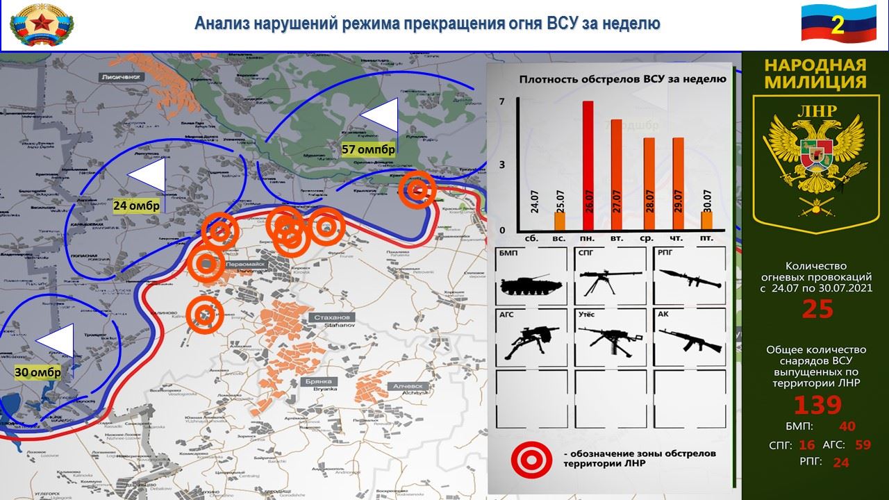 На славяносербском направлении боевики 15 батальона 128 бригады по приказу комбата Гольшевского с позиций в районе н. п. Новотошковское обстреляли из крупнокалиберного пулемета район н. п. Березовское.