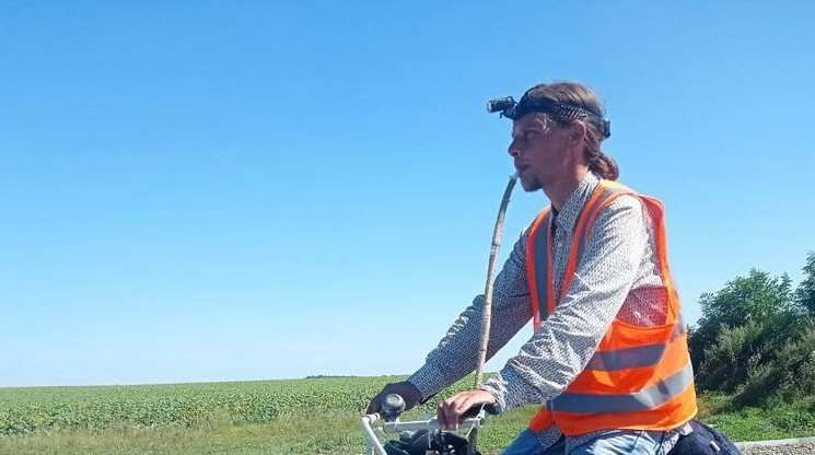 «Изобретатель из из Николаева проехал почти 600 км на велосипеде, играя Гимн Украины на флейте, которую он смастерил из пластиковых труб и прикрепил к рулю велосипеда.