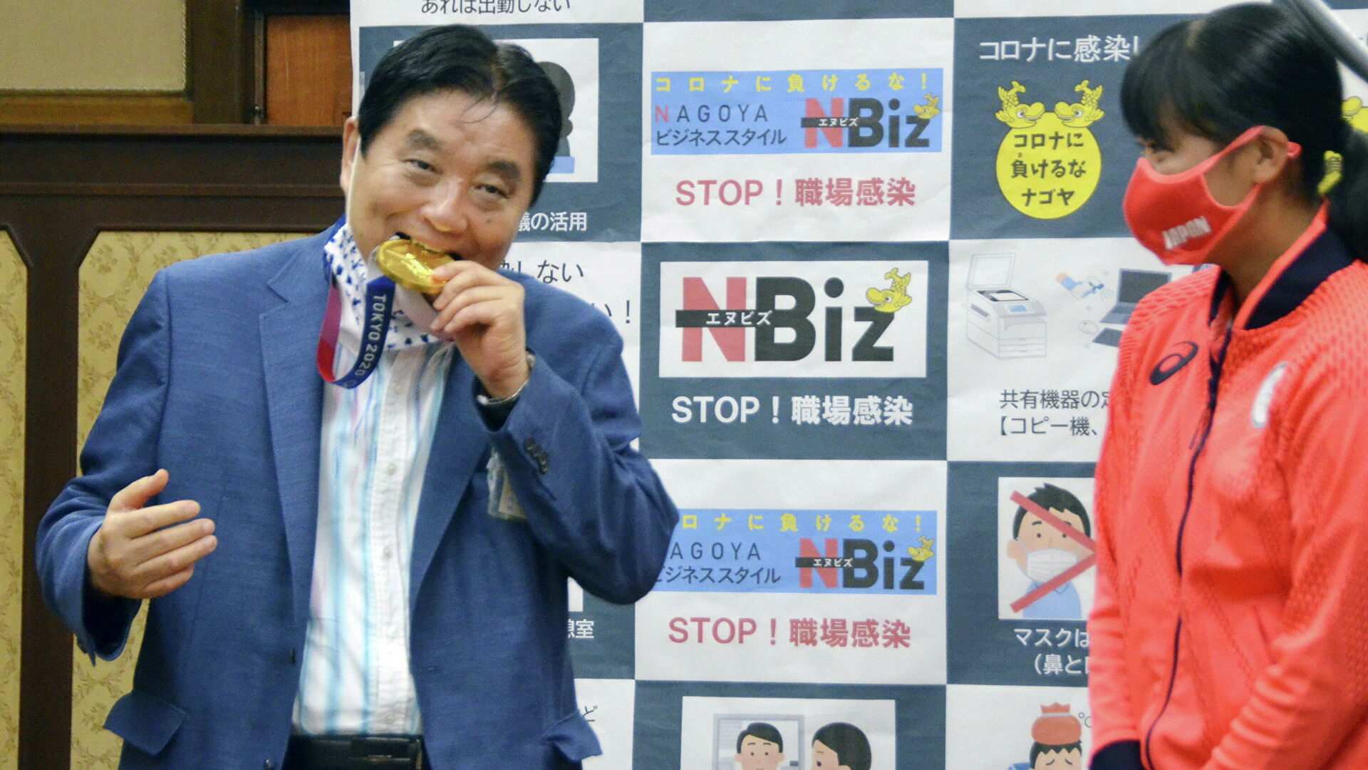 Мэр японского города Нагои Такаси Кавамура попозировал перед репортерами с золотой медалью чемпионки по софтболу Миу Гото, пренебрегая правилами гигиены и противоэпидемической безопасности. В результате 20-летней спортсменке поменяют медаль.