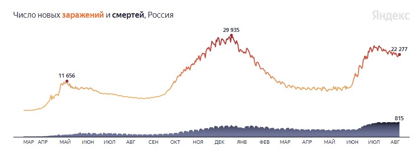 За сутки в России скончались 815 пациентов с COVID-19 — это новый суточный антирекорд за всё время с начала эпидемии в нашей стране.