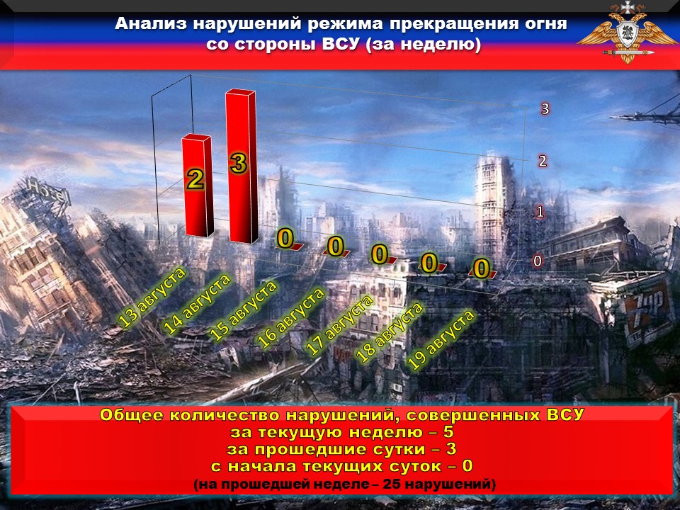 Факты нарушений в оперативном порядке доведены до представителей украинской стороны в СЦКК с целью своевременного принятия мер к нарушителям перемирия и исключения фальсификации данных о нарушениях режима прекращения огня со стороны украинских боевиков.
