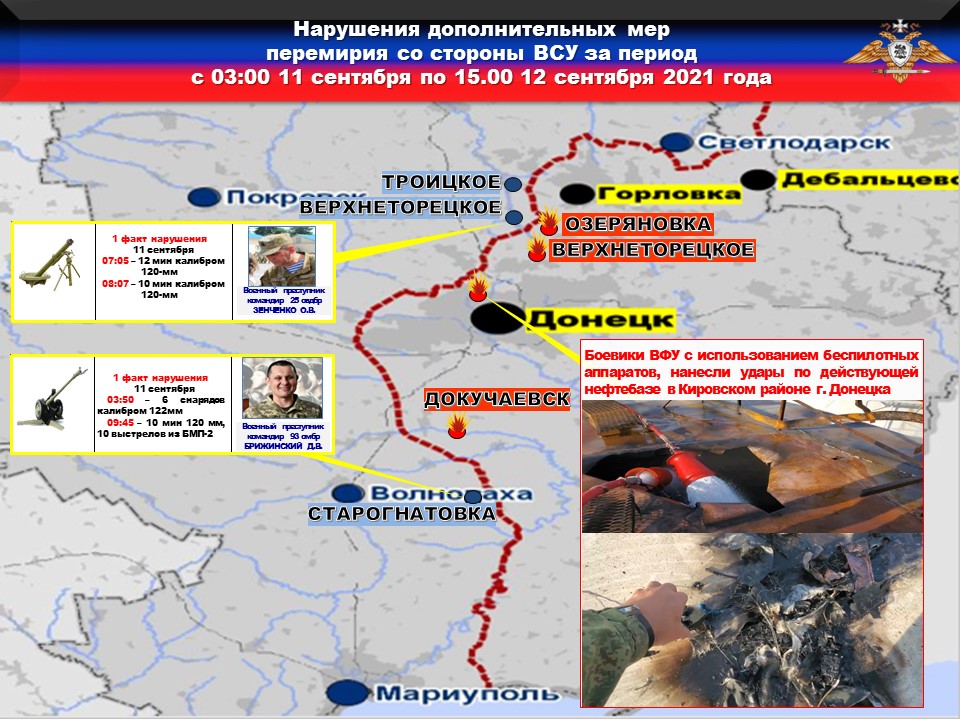 Все факты нарушений были доведены до представителей украинской стороны в СЦКК с целью своевременного принятия мер к нарушителям перемирия и исключения фальсификации данных о нарушениях режима прекращения огня со стороны украинских боевиков.