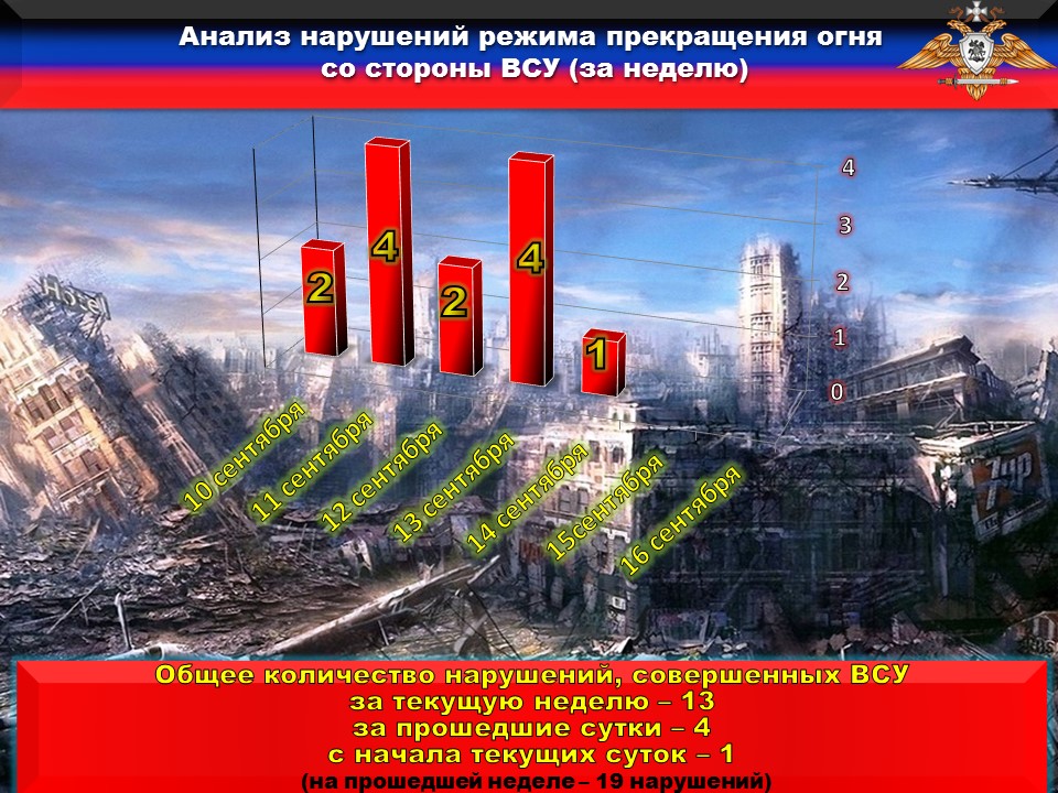 Факты нарушений в оперативном порядке доведены до представителей украинской стороны в СЦКК с целью своевременного принятия мер к нарушителям перемирия и исключения фальсификации данных о нарушениях режима прекращения огня со стороны украинских боевиков.