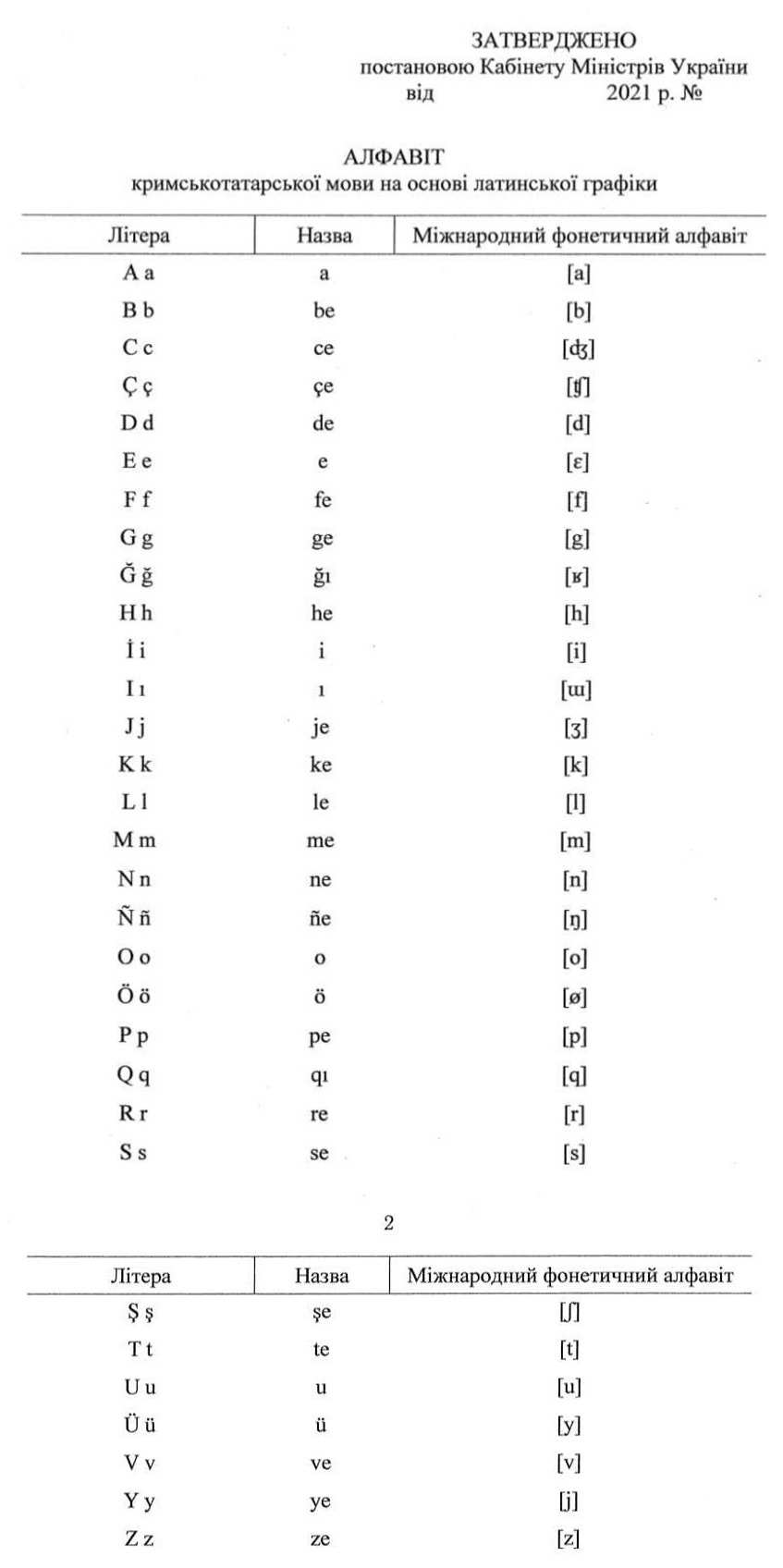 Крымско-татарский язык на Украине перевели на латиницу. Кабмин утвердил новый алфавит, который состоит из 31 буквы.