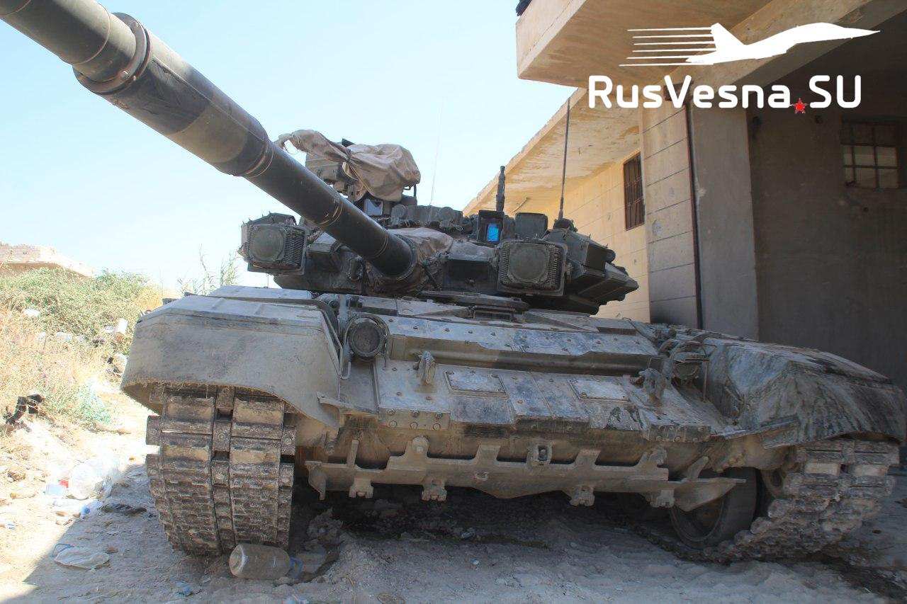 В эти дни сирийские военные провели проверку боевой готовности военной техники перед отправкой на север Сирии в районы Телль-Рифъат и Мембидж. В кадр военкоров «Русской Весны» попали танки Т-90, а также САУ «Гвоздика» и реактивные системы залпового огня БМ-21 «Град».