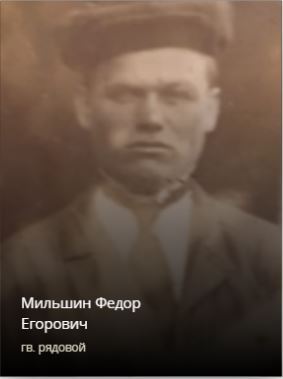 Старший сын Егора — Митрофан Егорович Мильшин (02.27.1908 — 1987) воевал с декабря 1942 года рядовым в составе 239 стрелкового полка.